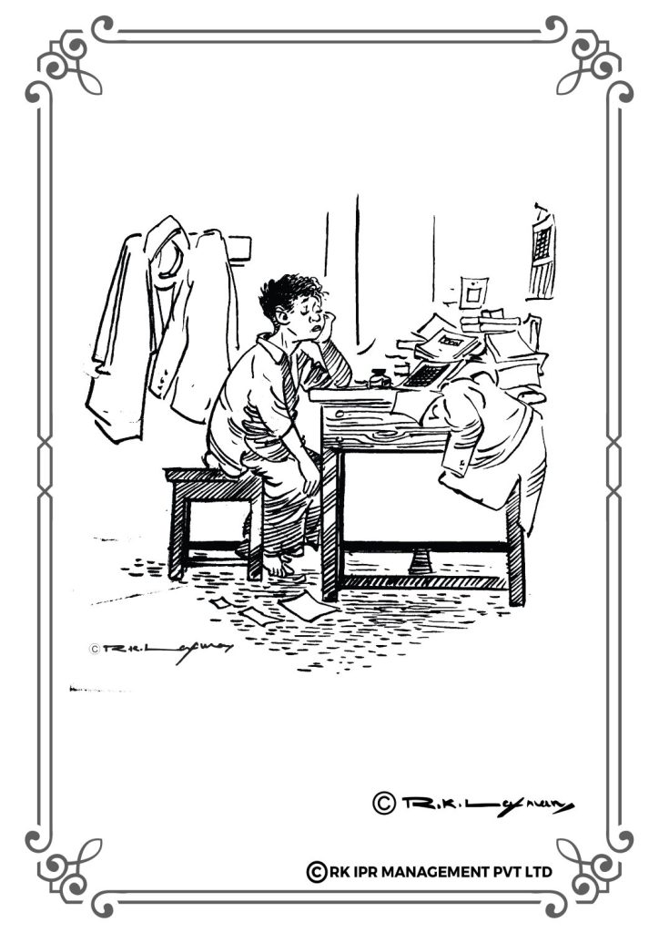 Sensitivity to surroundings, sharp wit, sound judgement and powerful observation has instilled creativity in R.K. Laxman, also as a writer. His sharp wit bears the stamp of a dyed-in-the-wool humour. Even the minute incident cannot miss his eye. He watches strangers either in the lobby of a hotel or at the airport, amused by the animated conversation that these people have with each other. Hotels and airports are just examples. He had the habit of strolling around any market place, crowded parks, by lanes, streets etc to catch a glimpse of happenings and situations around. In this bargain even, the helpers as in household maids, servant boys, drivers, peons, office boys and name any have not escaped his eye.